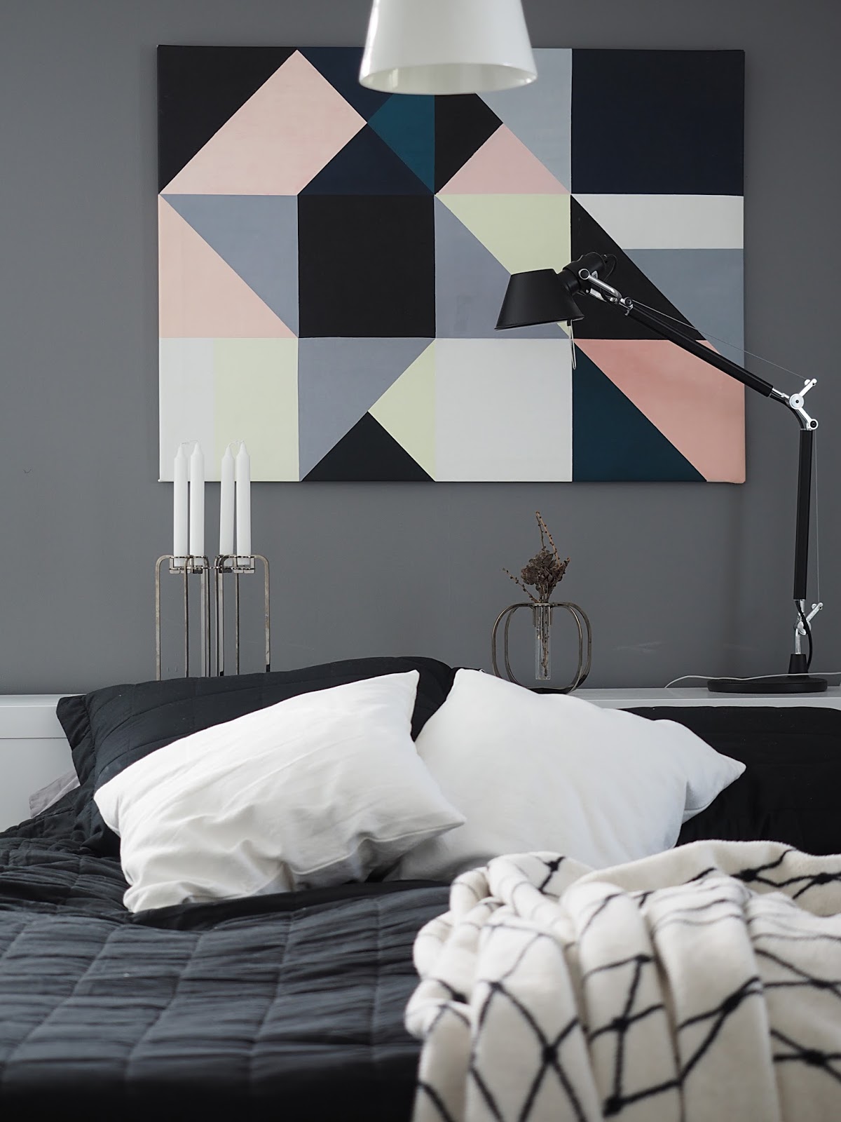 Vaikka ulkona tuleekin oltua lähes kokoaika on sisälläkin aina iltasella mukava jotain puuhata. Makuuhuone on saanut seinälleen taidetta. Eräs Oululainen nainen kertoi itse maalanneensa taulun ja kyllästyessään tähän hän päätti myydä sen. Torista siis bongasin ja ensisilmäyksellä se tuntui heti omalta.